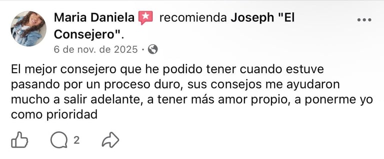 Gestor empresarial, coach profesional certificado y coach ontológico, con más de cuatro años de experiencia acompañando procesos de desarrollo personal, liderazgo y transformación individual. Integro herramientas del coaching ontológico y motivacional para ayudarte a identificar quiebres, fortalecer la toma de decisiones y generar cambios sostenibles desde la conciencia y la responsabilidad personal. Como creador de contenido digital, conocido como Joseph en Consejero, he impactado a millones de personas con mensajes estratégicos y reflexivos, posicionándome como una voz cercana y confiable en temas de crecimiento personal, relaciones y propósito de vida. Mi enfoque combina estructura, empatía y resultados, ofreciendo acompañamientos claros, humanos y orientados al desarrollo integral.